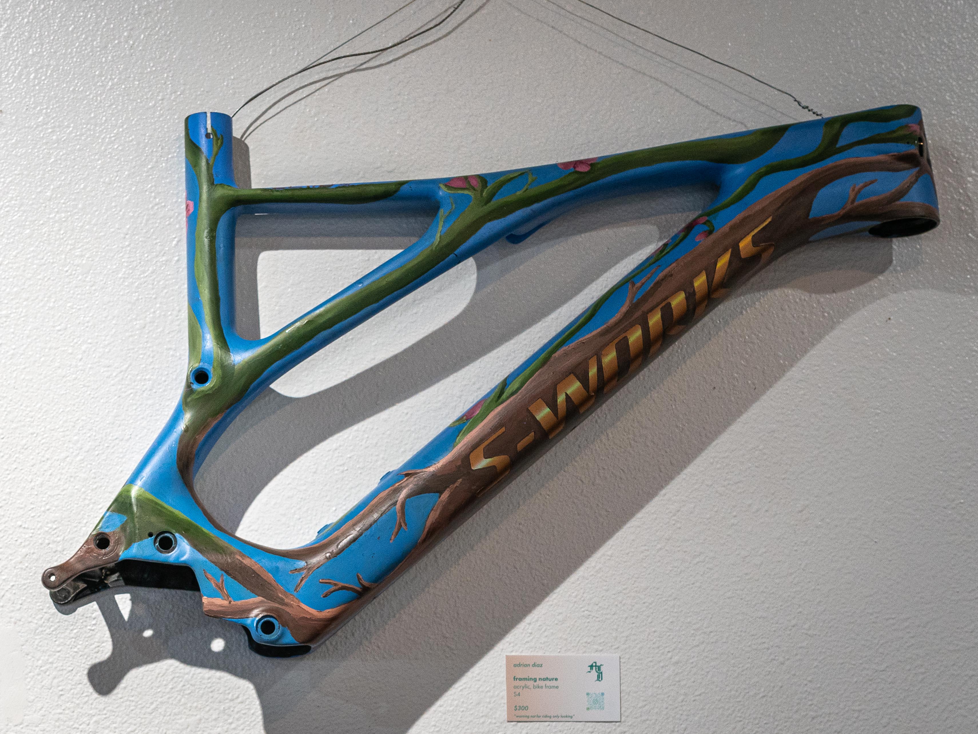 Hi! I'm Adrian Max Diaz, a passionate Latino American graphic designer with a zest for creativity. Whether I'm exploring mountain peaks, capturing moments with my camera, or tearing up trails on my mountain bike (as seen above), I'm always seeking inspiration. In my spare moments, I transform warranty frames, wheels, and bike parts into captivating paintings, giving new life to discarded objects destined for landfills.